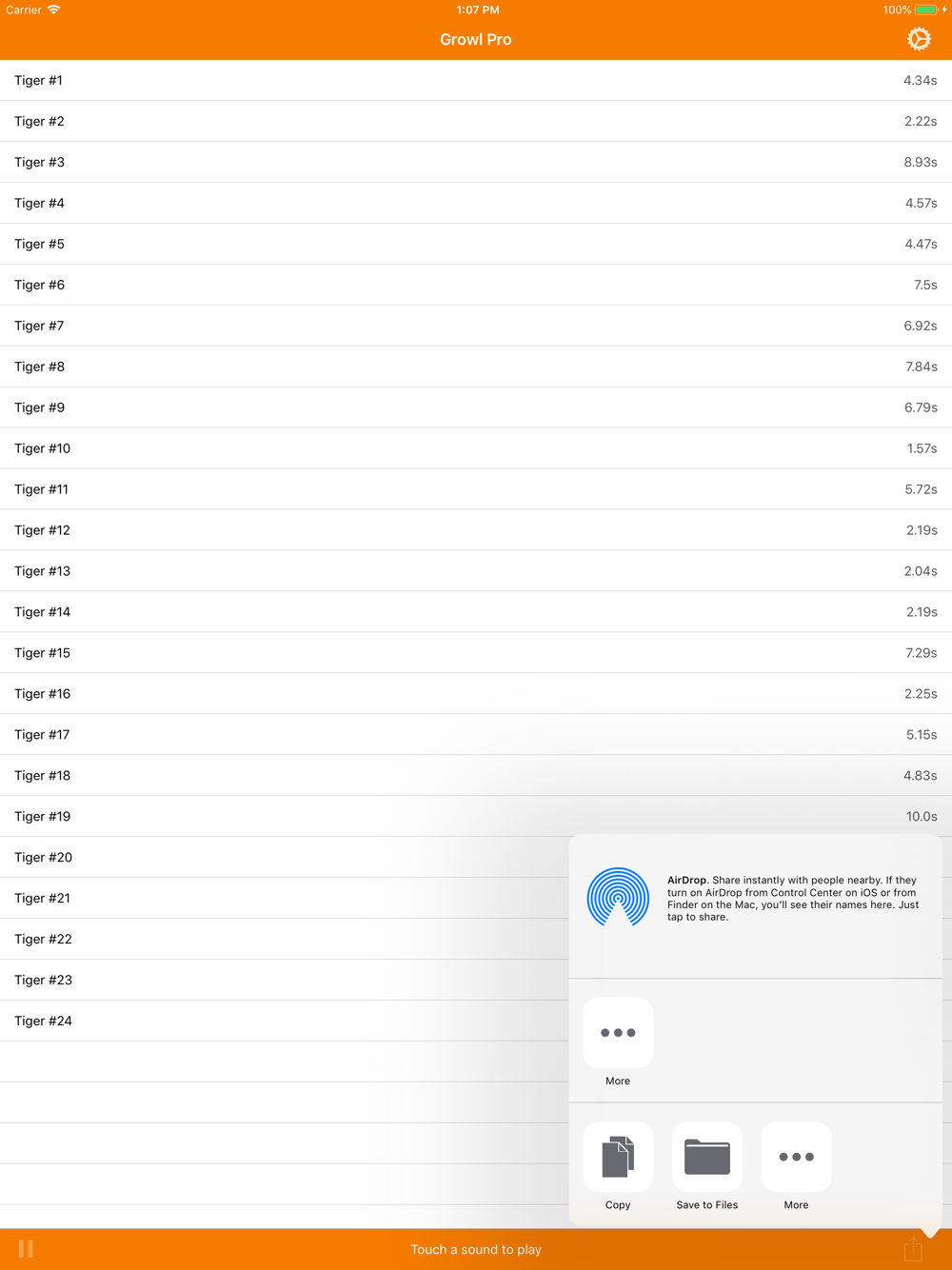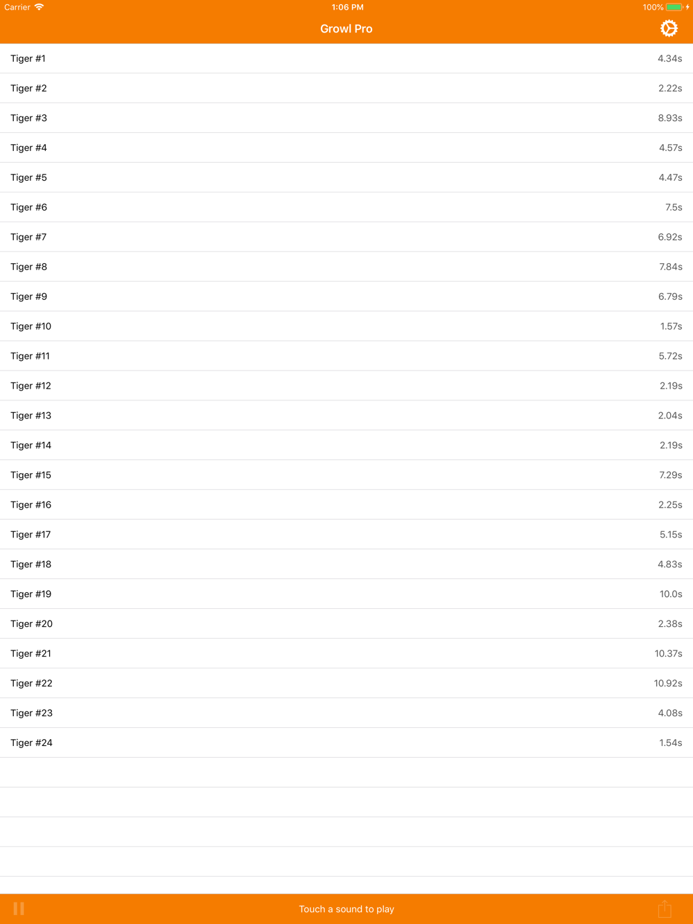 The best tiger sounds, remastered for maximum quality and normalised volume. Press any sound within the list for instant growling playback. Share the popular tiger sounds with your friends and family using the built in share feature.