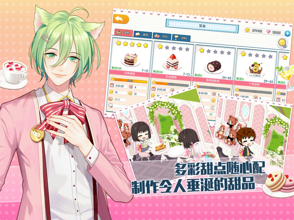 想不想经营一家属于自己的甜品呢?《萌猫物语》帮你实现!猫咪男子将手把手教你如何开店、如何制作甜品、如何布置独具一格的店铺,与猫咪男子们共同努力打造出世界顶级甜品店吧!