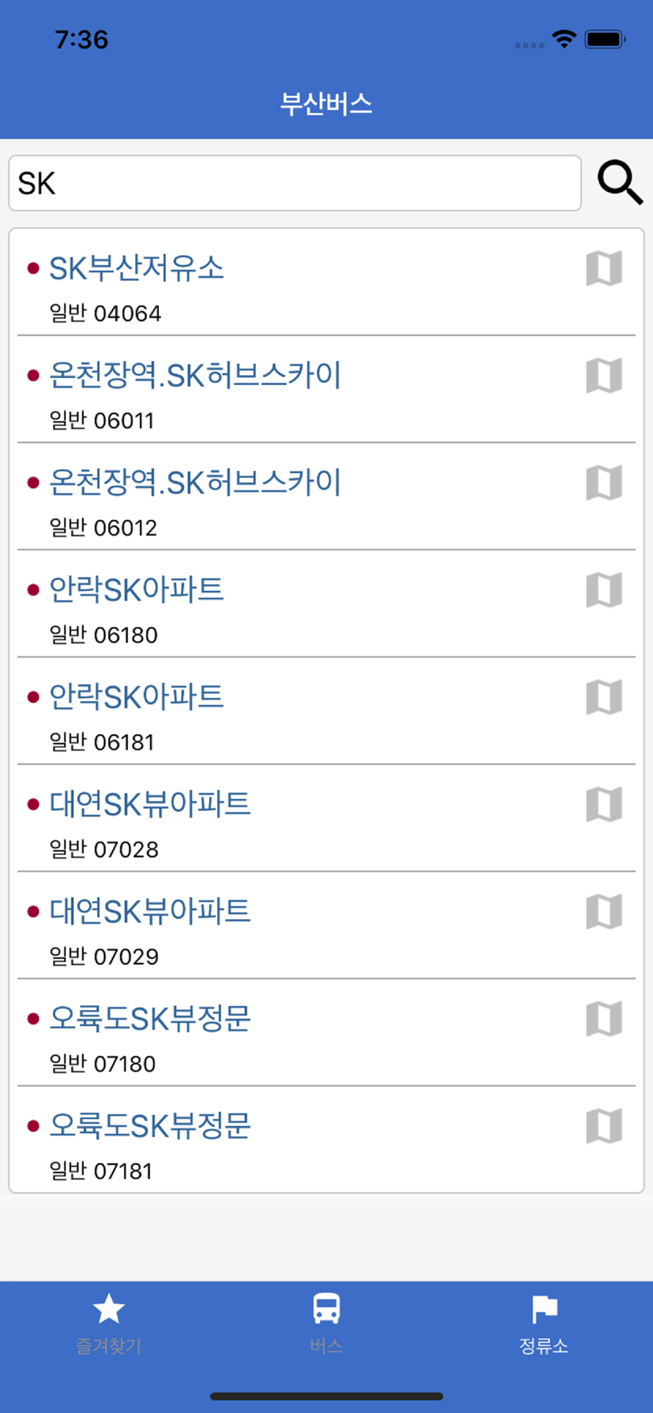 - 일반과 마을 정류소를 검색 할 수 있습니다.
