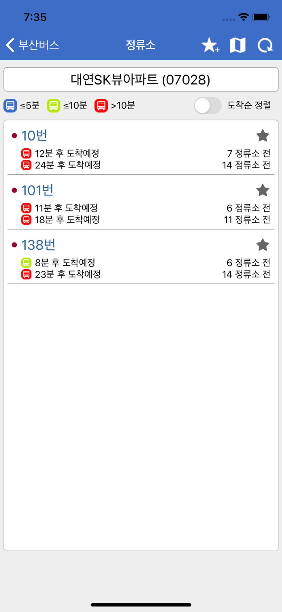 - 선호버스(핀마크)를 선택하면 선호버스는 항상 상위에 표시됩니다.