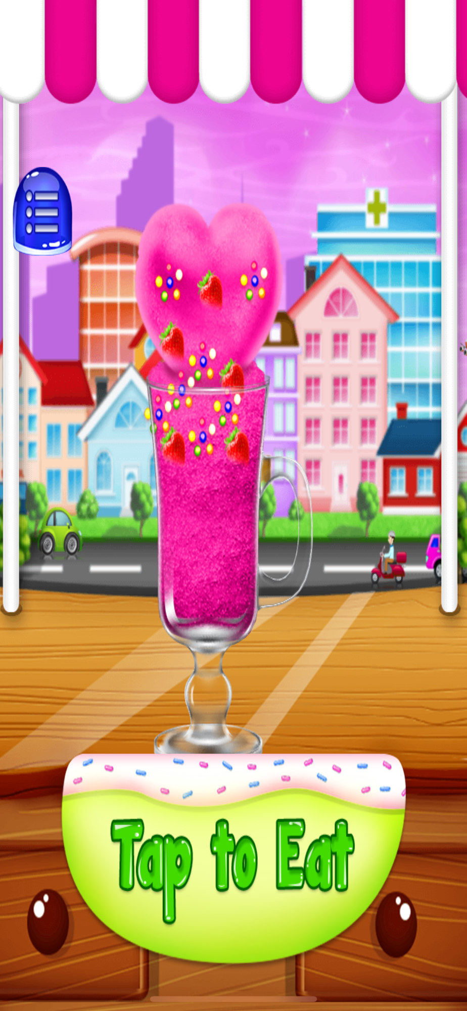 Make your own virtual fruit slushy without the mess ! Here lots of different fruit flavors are available to make the frosty slushy. just add ice, sweet fruits and flavors and then blend it and add your favorite toppings, your frozen slushy will be ready within a minute.