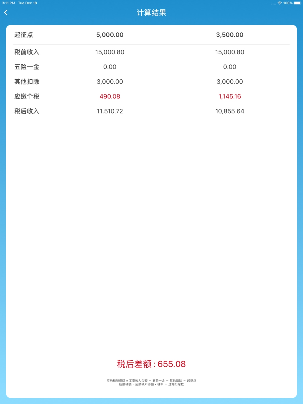 2.可以对比新个税起征点5000和老个税起征点3500的数据一目了然