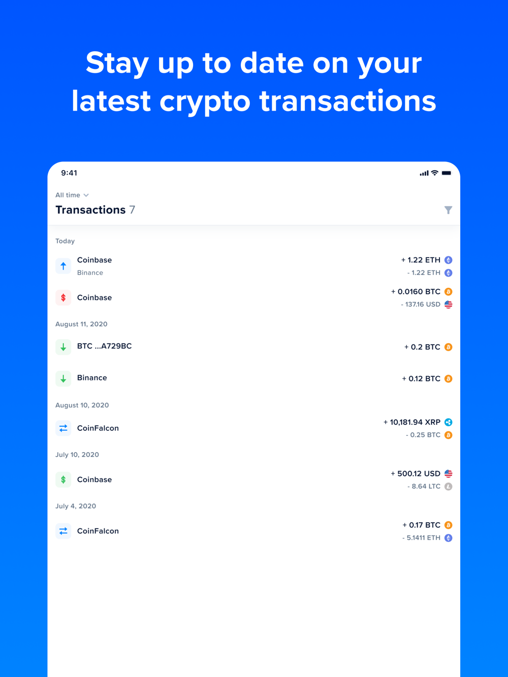 CoinTracker synchronizes balances, transactions, and ERC20 tokens from your local wallets and exchange accounts. We have read-only access to your accounts, so rest assured your funds are safe.