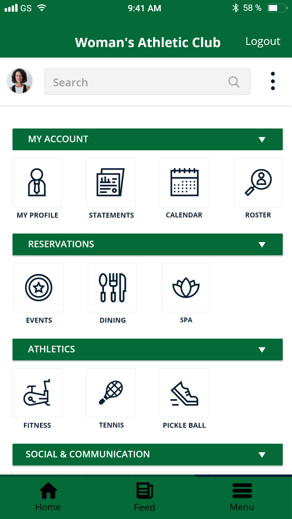 Woman's Athletic Club Mobile App can monitor statements, explore the directory, stay updated on club events, make reservations, and more.