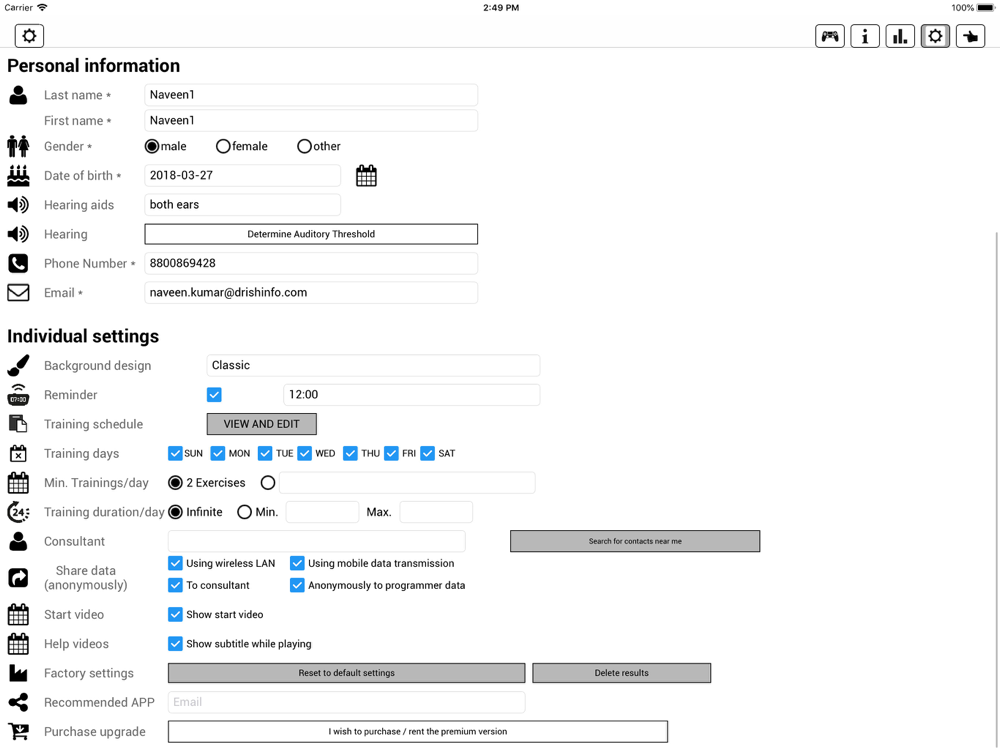Additional information is stored cloud-based for you and can be evaluated by your trusted Hearing Fitness Consultant and used for further monitoring and structuring of your training.