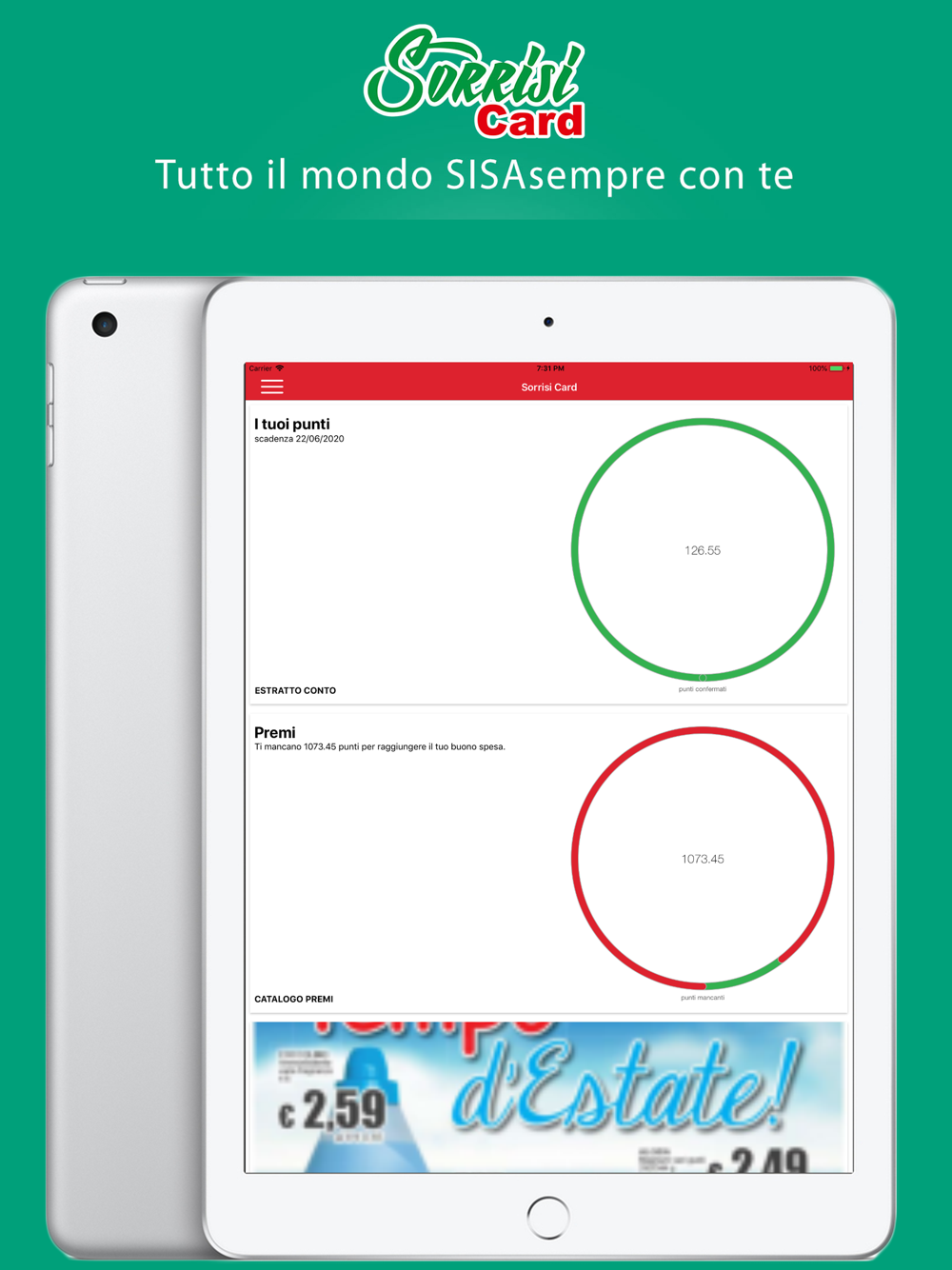 Scarica subito l'applicazione Sorrisi Card e rimani sempre connesso al mondo Sisa. L’app ti permetterà di visualizzare in tempo reale i punti accumulati presso i Supermercati Sisa ed i prestigiosi Partner online che fanno parte del circuito Sisa-Promoshops.