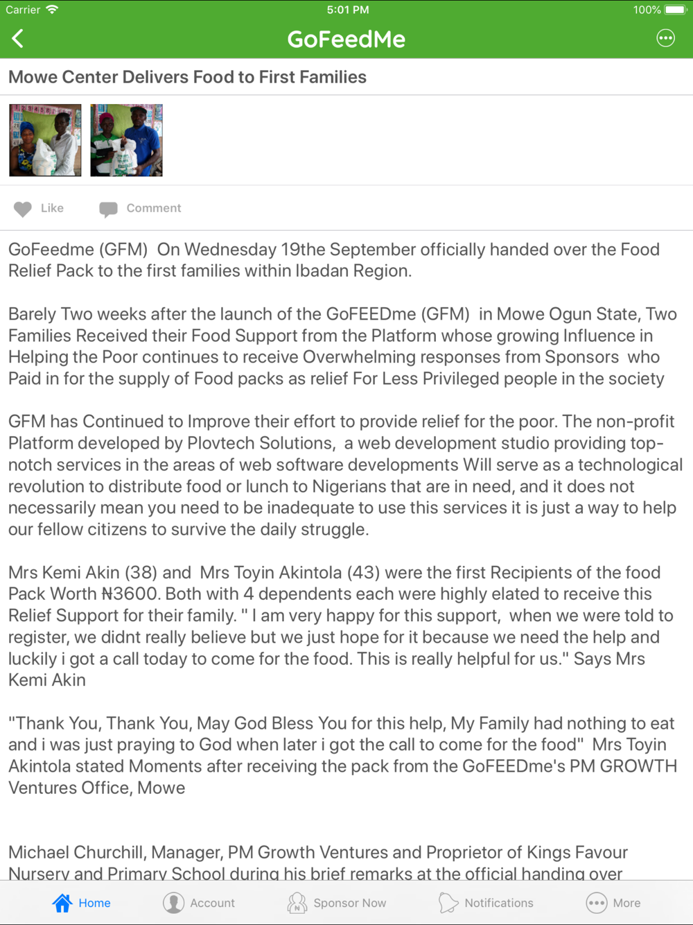 GoFeedMe is a technological revolution to distribute food or lunch to Nigerians that are in need.
