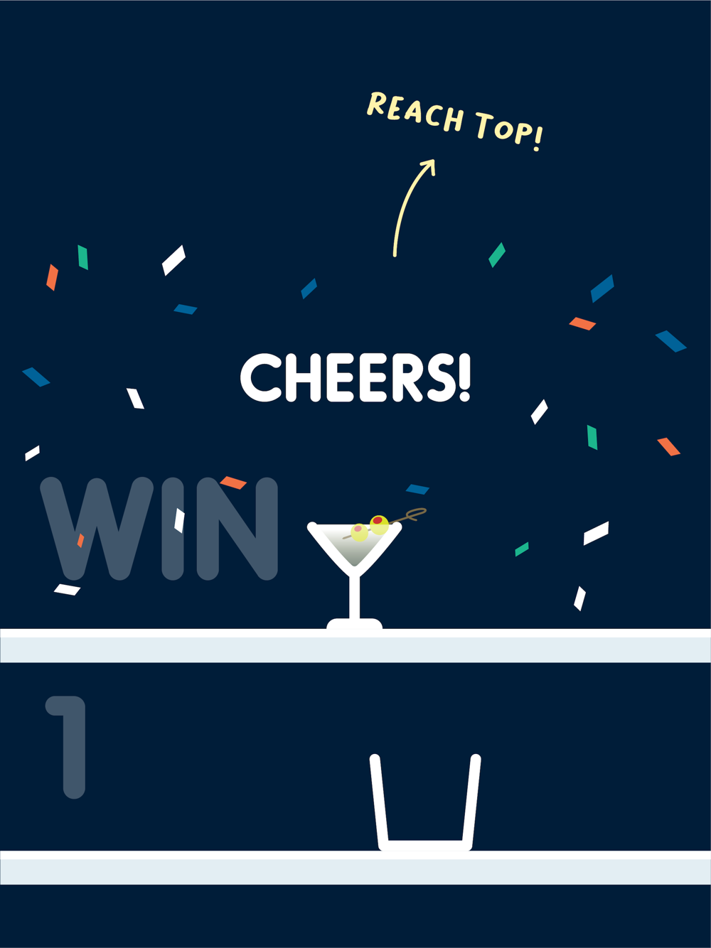 You need to use different glasses to catch the ice cube on different floors; these tricky glasses might slide, vanish or explode anytime. Whenever you beat the bosses and reach the top floor, you'll receive new cocktails as gifts! Be careful, if you drop the ice cube, you fail the mission!