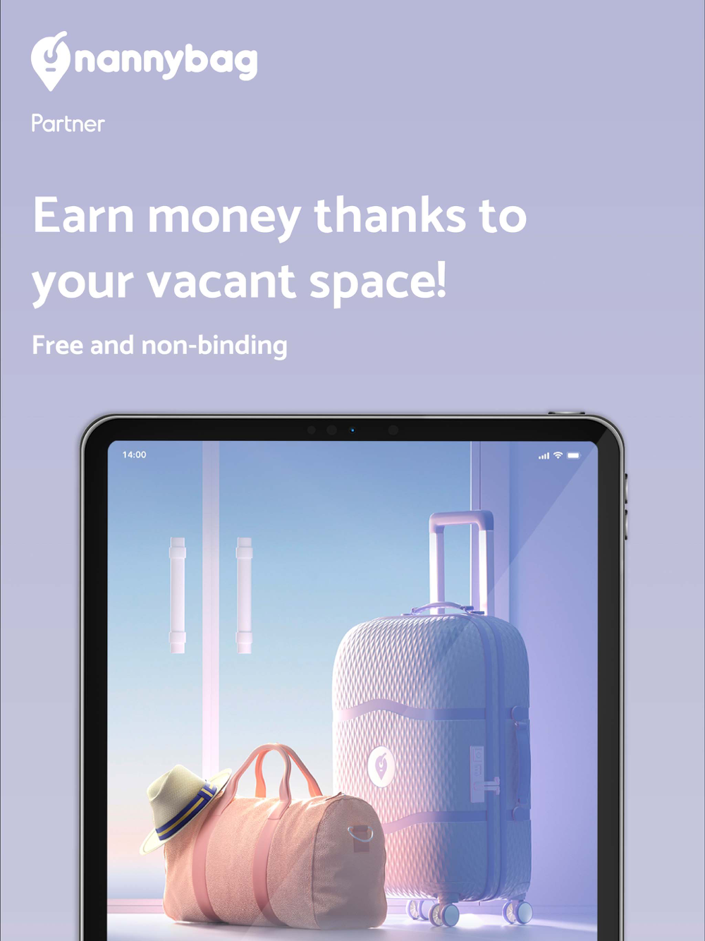 Is your business located near transport (train stations, airports, metro stations…), any monuments, or tourist sites? Nannybag is your chance to earn some easy extra income fast! The best part? We split earnings equally: 50% of each booking goes straight to the business, which allows Nannybag partners to earn up to €1,500 per month. Not to mention the additional sales generated thanks to the extra traffic in the store.