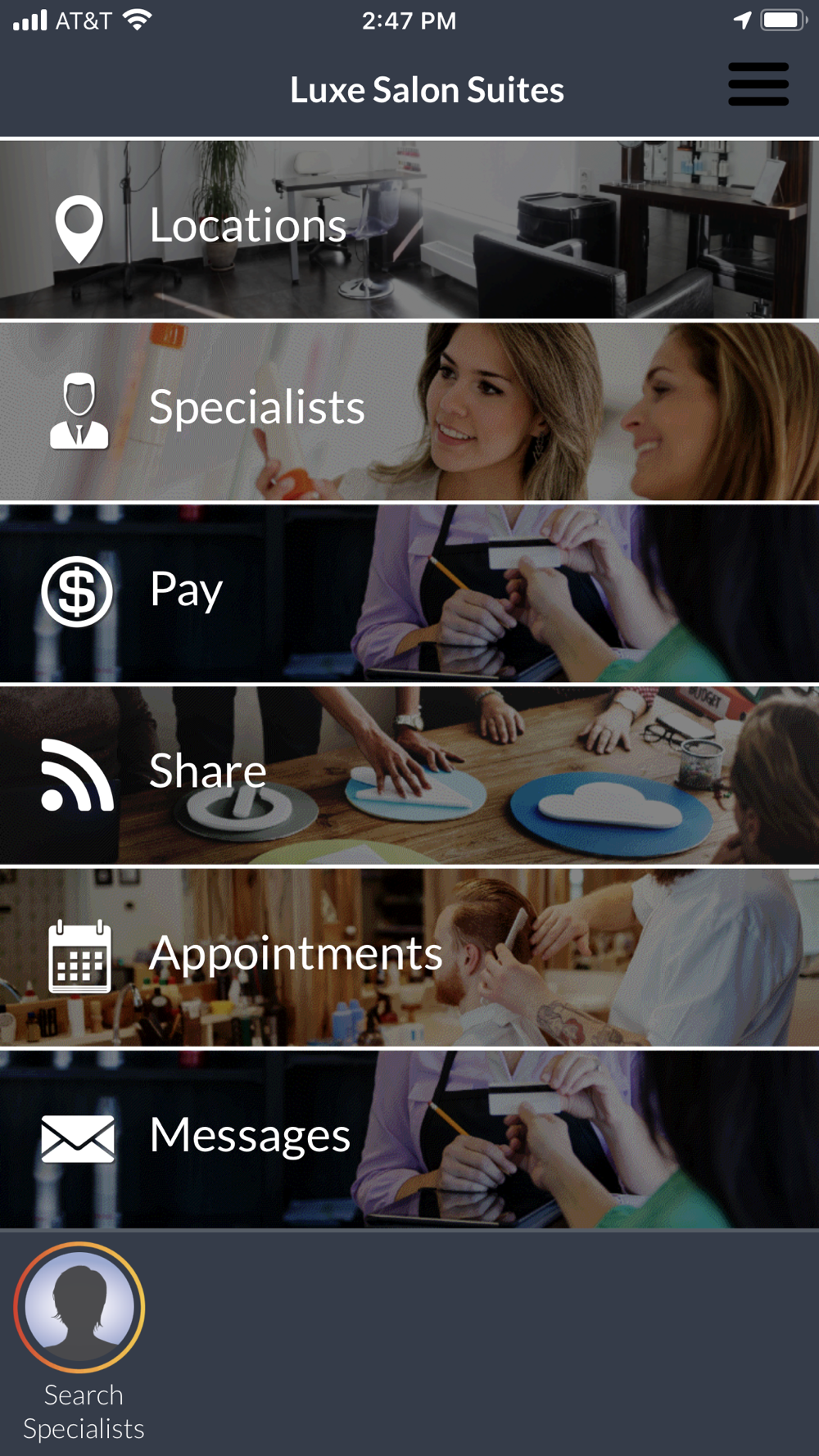 The Luxe Salon Suites mobile app is for clients of tenant businesses to book appointments, communicate, confirm and pay for hair, nail, and massage services provided by the business owners that reside in a location.