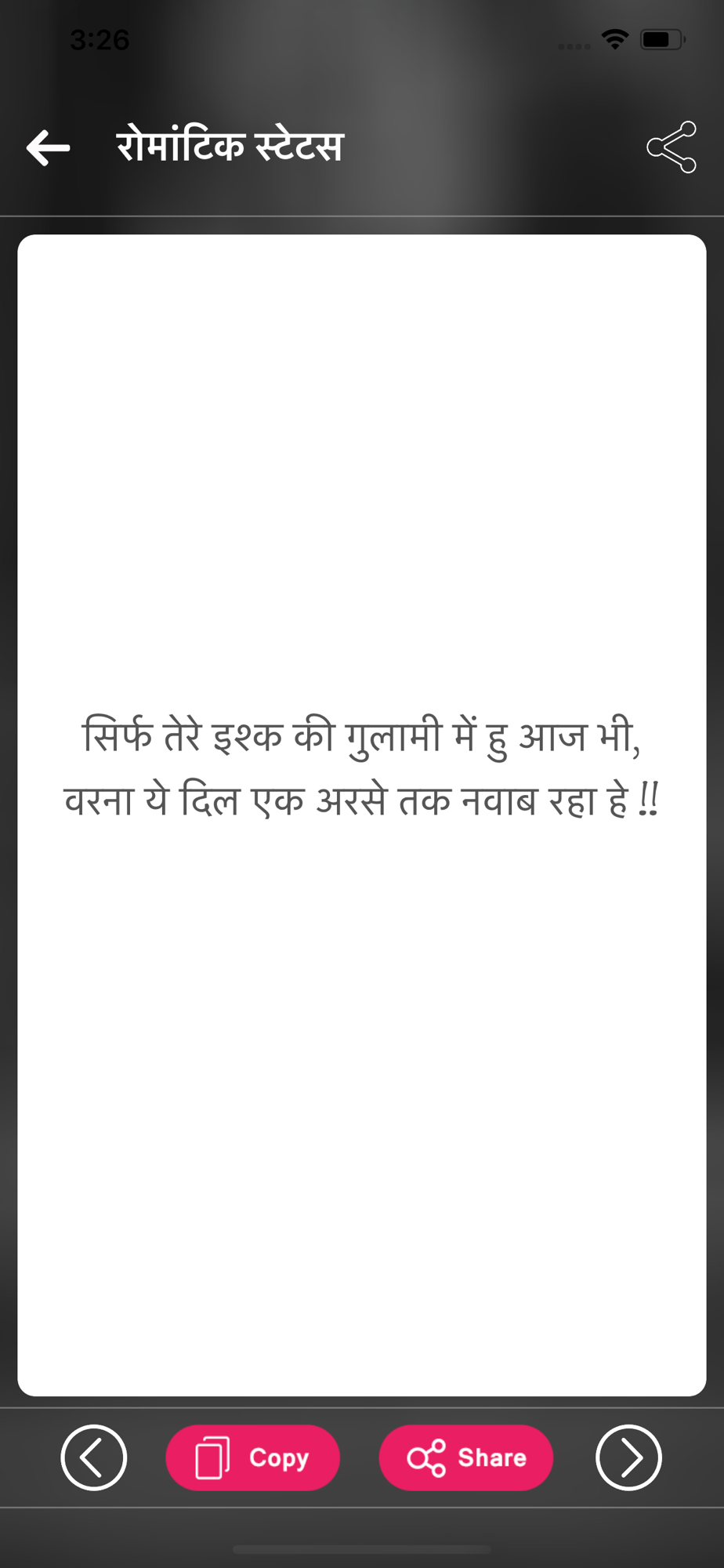 ► Copy Status Text as well Share Status Text to your Facebook / Twitter / WhatsApp /Instagram etc account.