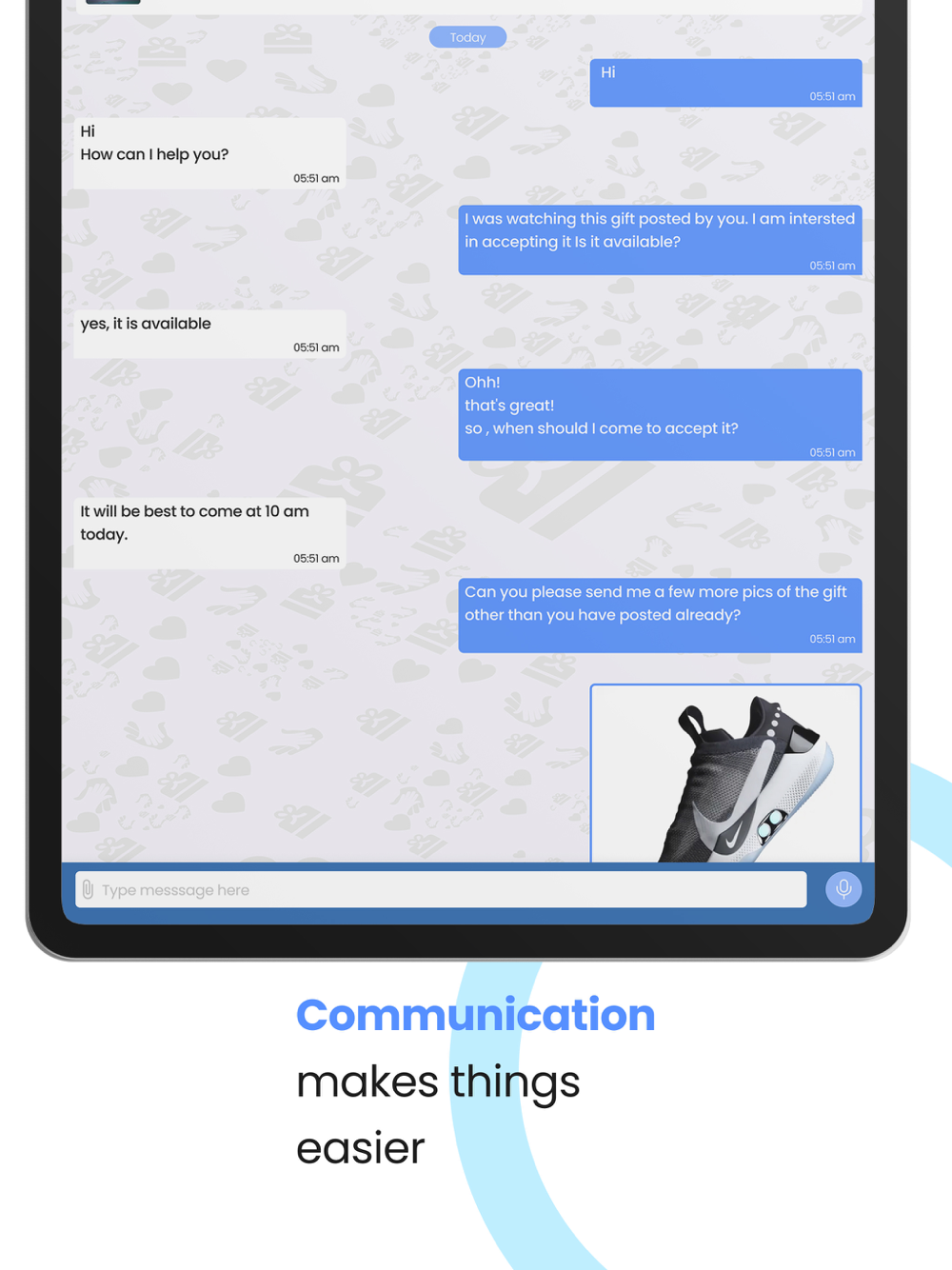 Engage in heartfelt conversations with those who need the items you're sharing. Our in-app chat feature makes it easy to connect, coordinate, and spread kindness seamlessly.