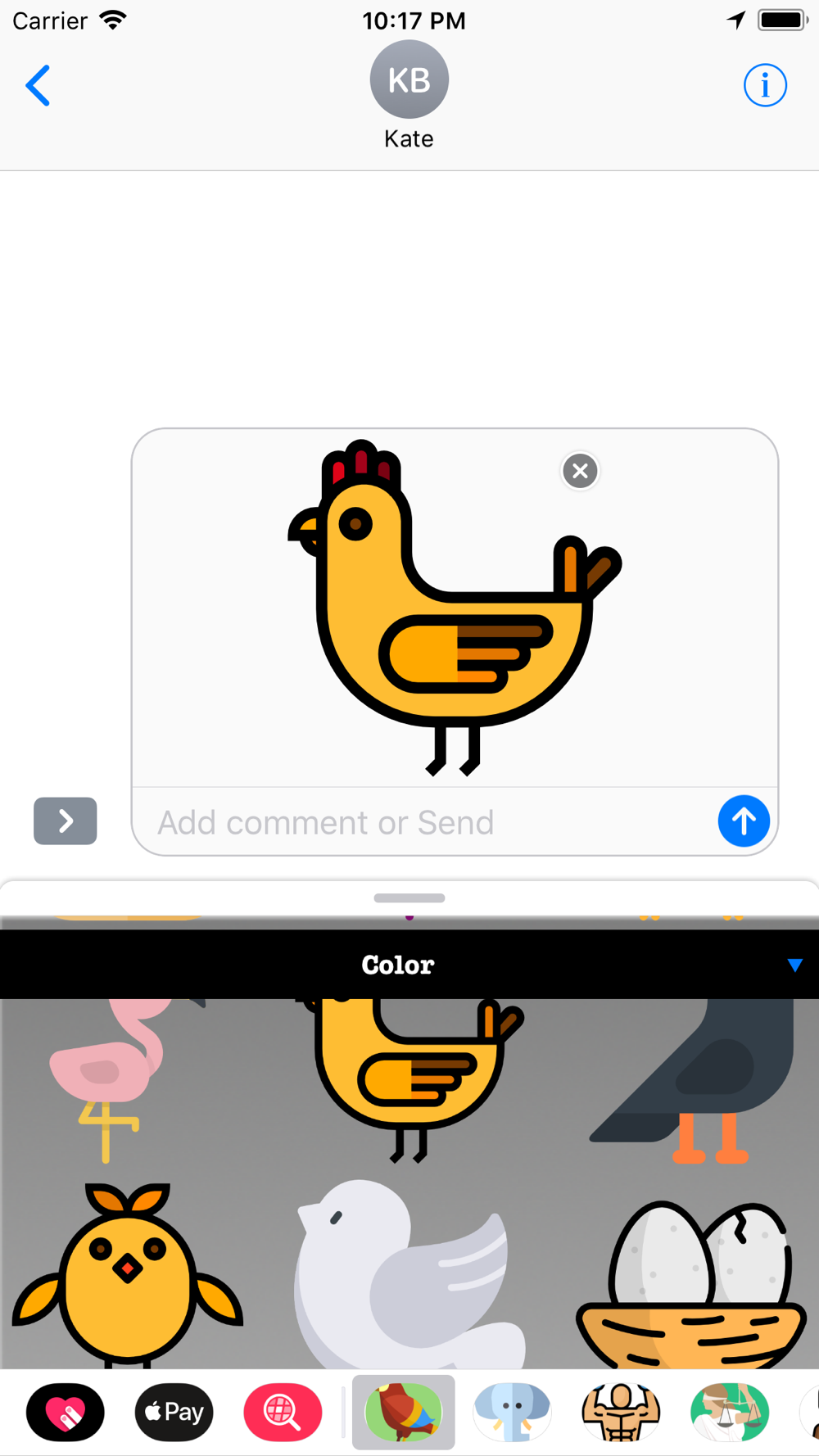 Drag-and-drop stickers right into your conversation or tap the virtual sticker once to place it in your normal text bubble. You can even adjust the sticker size to make a little comment or a big impression with the adjustable slider bar.