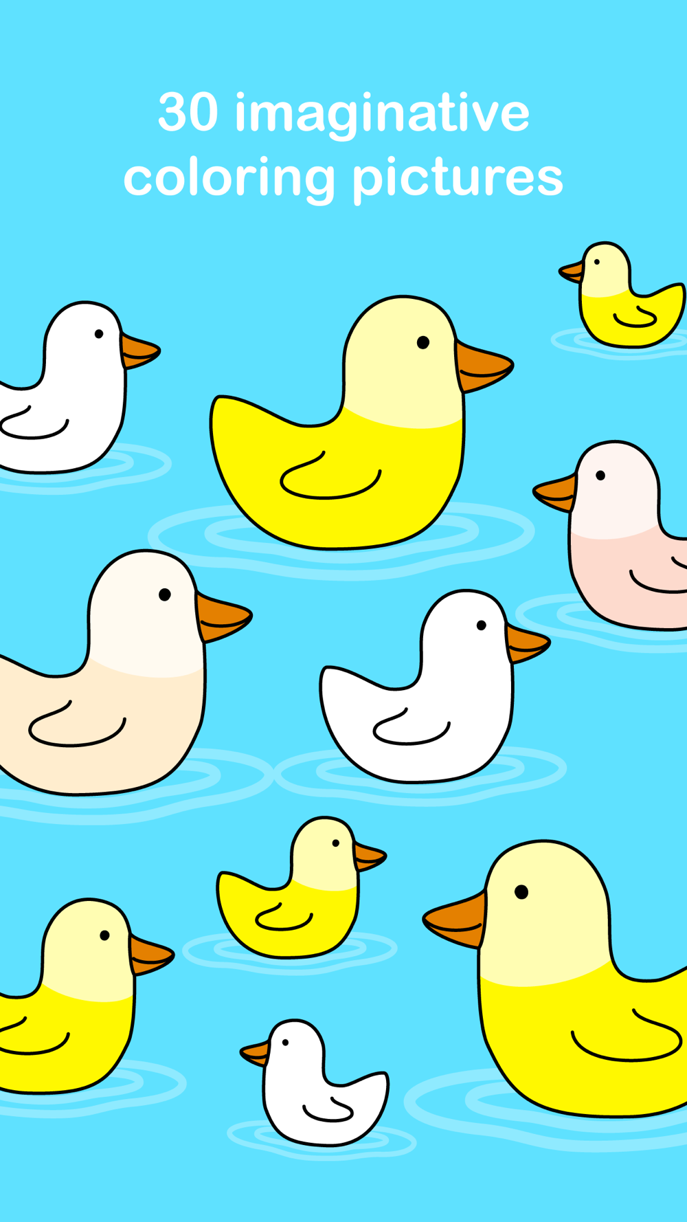 - 3 in-app sets of beautiful pictures for kids to color - "Shapes", "Kaleidoscope" and "Animals"