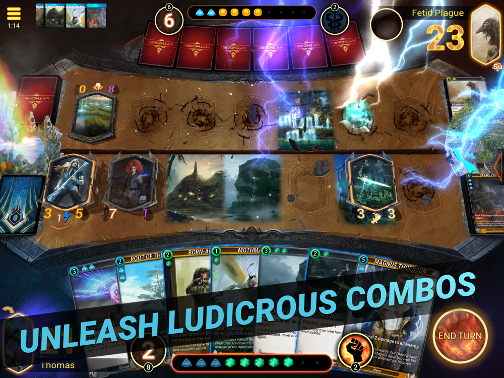 Mythgard is a collectible card game of boundless depth and infinite strategy. Experience a unique game with fast and fluid tactical action. Use spells, minions, enchantments, and artifacts to vanquish your opponents. Every play could mark the difference between victory and defeat. Your deck is not restricted to a single class or faction, opening a world of limitless possibility.