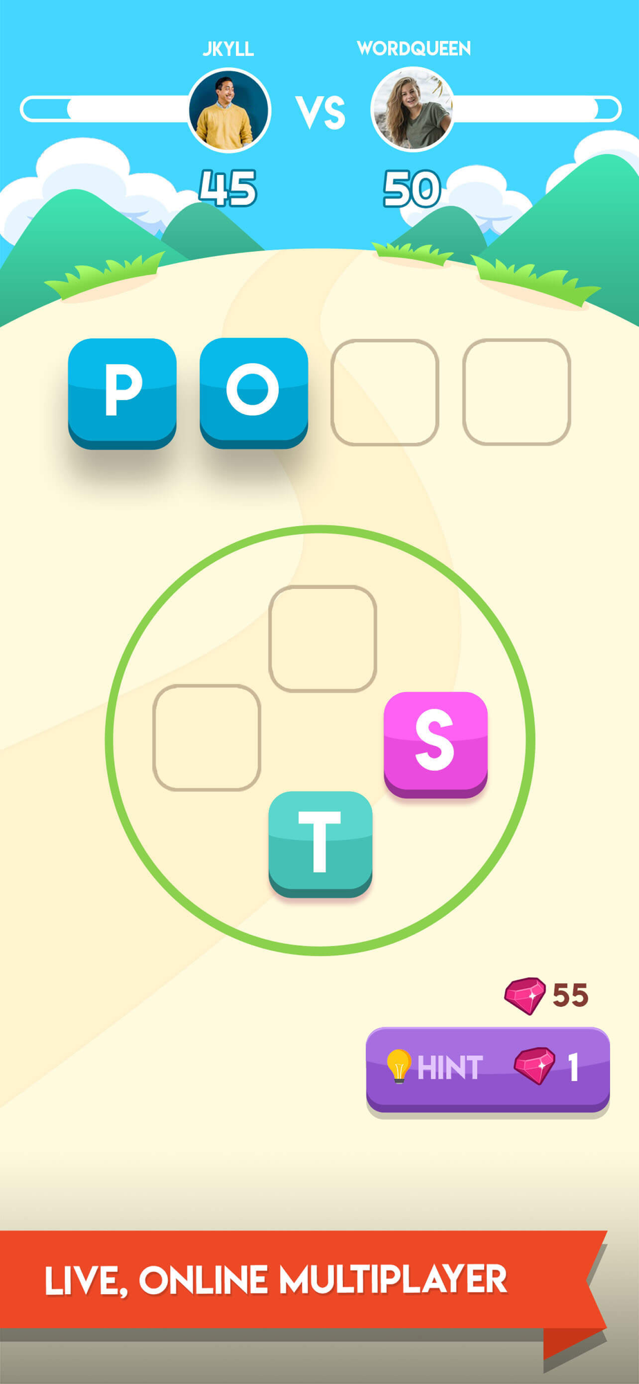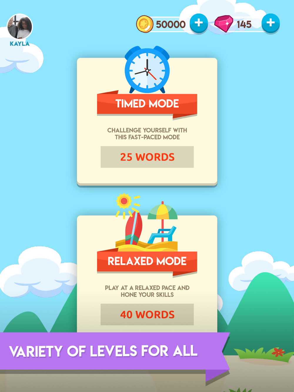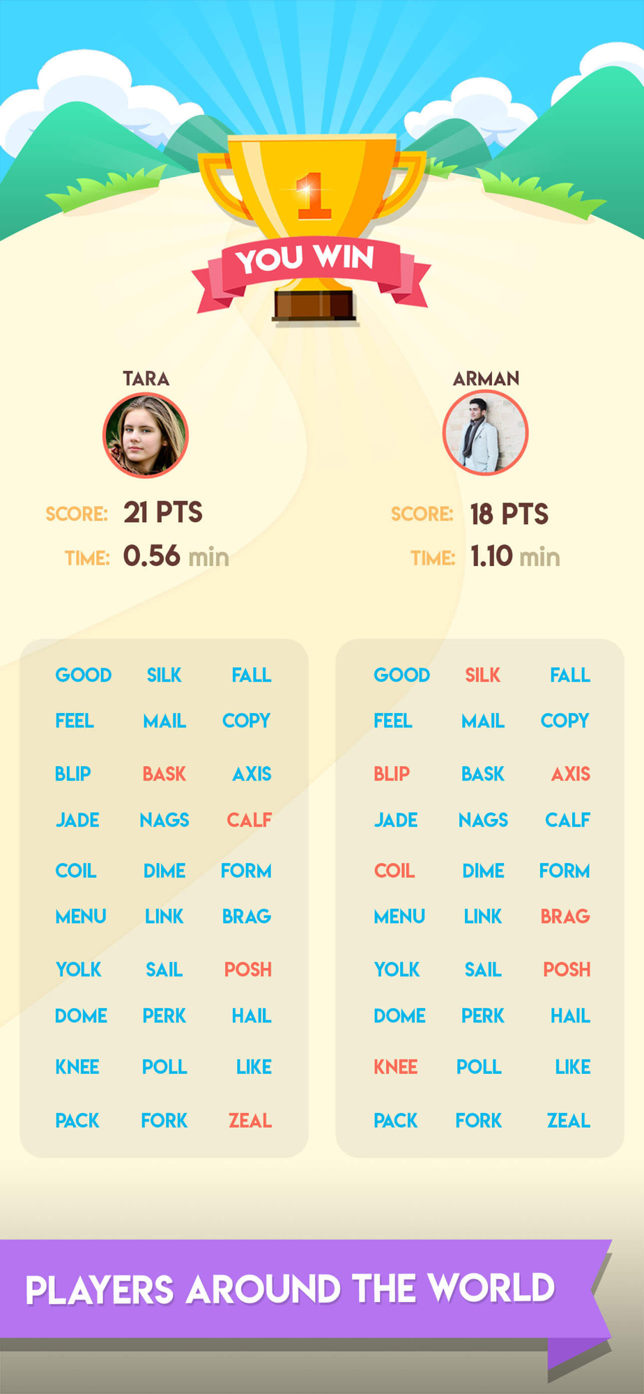 With the multiplayer experience, you get to defeat an opponent by forming the maximum number of words in the shortest time possible!