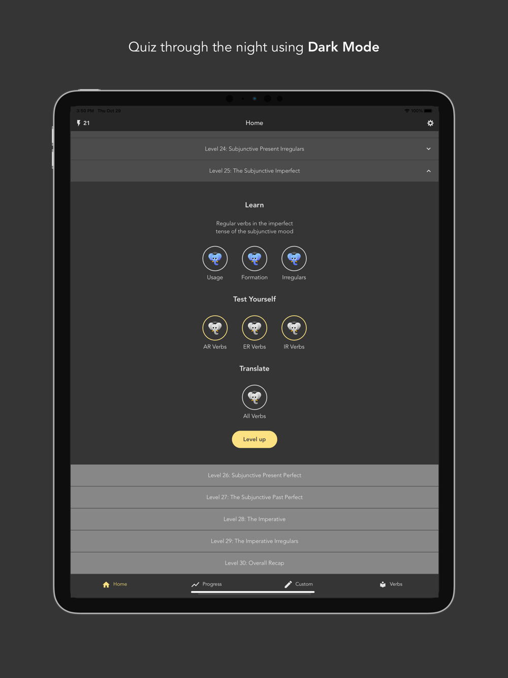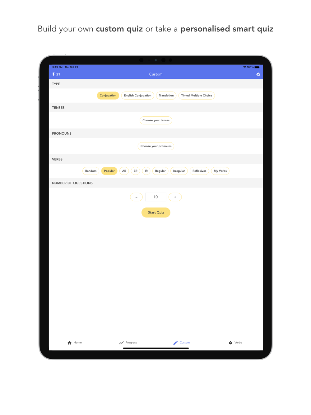 - Build your own custom list of verbs to study (Pro only).
