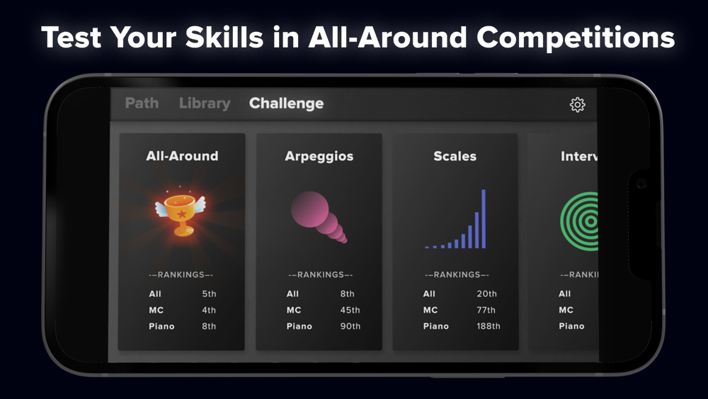 - A library of exercises including intervals, scales, arpeggios, chords, progressions, tonal sequences, famous tunes, and atonal sequences.