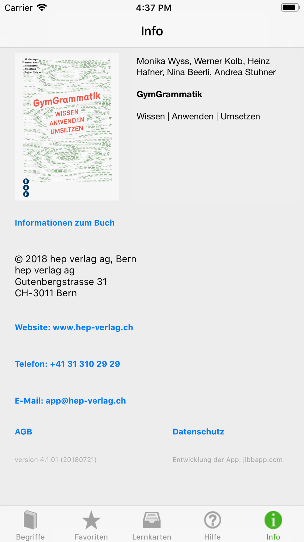 Diese App basiert auf dem Lehrmittel «GymGrammatik» von Monika Wyss, Werner Kolb, Heinz Hafner, Nina Beerli, Andrea Stuhner aus dem hep verlag. Sie enthält alle Begriffsdefinitionen des Glossars aus dem Buch - alphabetisch oder nach den Kapiteln geordnet.