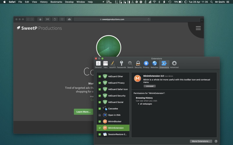 Minim is integrated right into Safari as an extension and built using the latest macOS technologies to be fast, and does not degrade your browsing experience. In fact it enhances your internet, as everything you decide to block is not just hidden (like javascript based blockers) - but is actually blocked from downloading at all. This has the effect of speeding up your browsing by avoiding download of junk data.