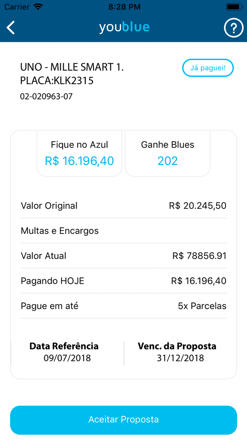 YouBlue é um aplicativo que intermedia acordos com credores que são nossos parceiros. O YouBlue será o melhor canal para negociar suas dívidas, com as melhores taxas de descontos e formas de pagamento. Você poderá enviar comprovantes de pagamentos, acompanhar online a regularização do seu nome junto ao nosso parceiro, além disso para cada débito pago pelo YouBlue você ganha blues que podem ser utilizados para obter ainda mais descontos em suas dívidas.