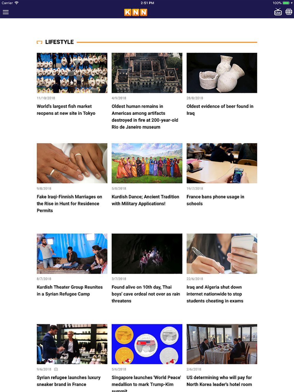 KNN is primarily a Kurdish-language channel; its main remit is local and international current-affairs. However, KNN reports extensively on the economy, politics, sport, culture, documentaries and the arts. News updates are supplemented by in-depth interviews with prominent Kurdish politicians and thinkers.Also, KNN produces a wide variety of documentaries and local-interest programmes, plus adapting foreign programming for Kurdish viewers.