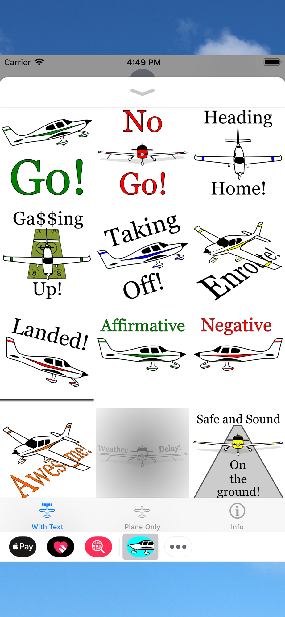The sticker pack also includes stickers with just the plane and no text for those times when sending an airplane says it all.