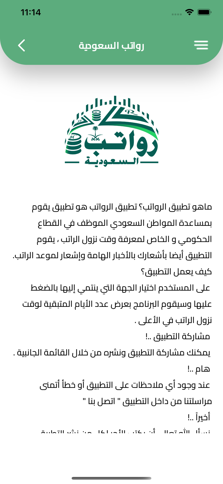 رواتب السعودية الجديد يذكرك و ينبهك بموعد صرف جميع رواتب الموظفين الحكوميين والشركات والمؤسسات الحكومية ورواتب المتقاعدين وحساب المواطن والضمان الاجتماعي الجديد المطور وحافز وشركة الكهرباء وأرامكو ، يمكنك مشاركة اي رواتب من خلال اختيار اي قطاع تنتمي إليه وتقدر تضيف الراتب في التقويم ينبهك عند نزول الراتب ، راح يوصلك اشعار عند نزول الرواتب او عند تحديث اي موعد للرواتب او تأجيلها تطبيق رواتب السعودية الجديد يمكنك الإعتماد عليه