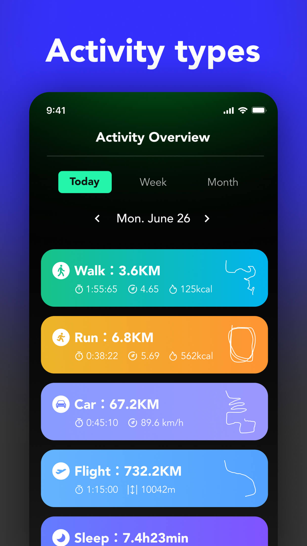 - Multiple data display formats, including activity timelines, map routes, and data statistics, help you better analyze your travel activities.
