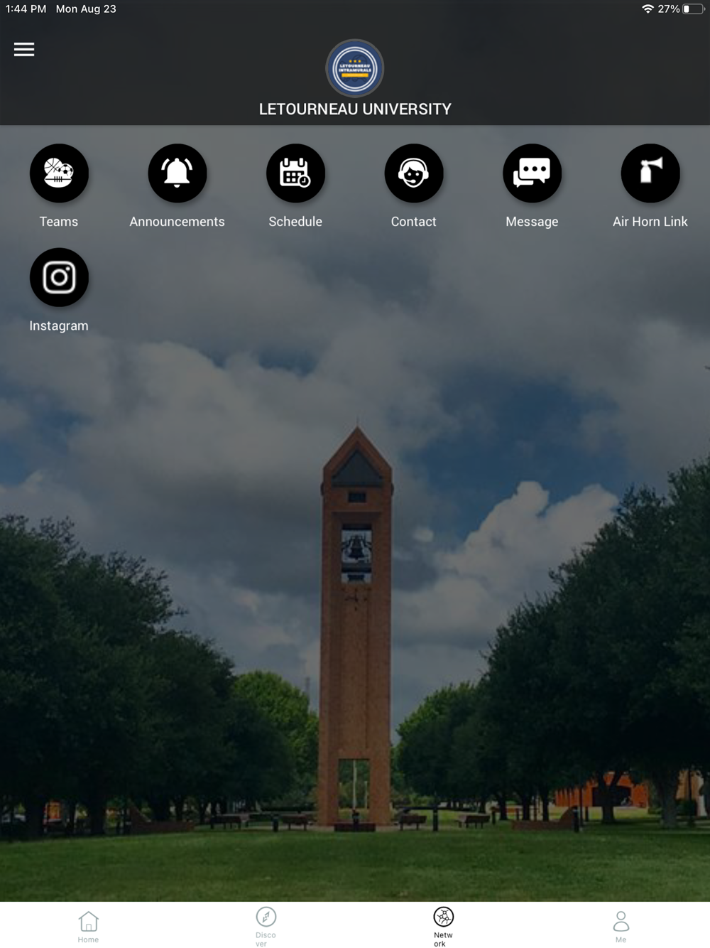 The official app for LeTourneau Intramural Sports! Stay up to date with LETU IMs by downloading our mobile app! You will have instant access to IM Sports schedules, check into games with unique QR codes, and much more.