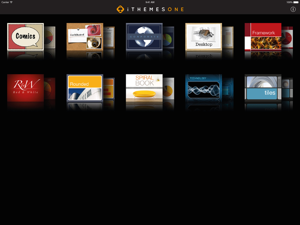 "iThemes One for Keynote" is a set of 10 professionally designed, high quality and easy to use themes for Keynote. Our most popular themes have been redesigned especially for newest Keynote software version.