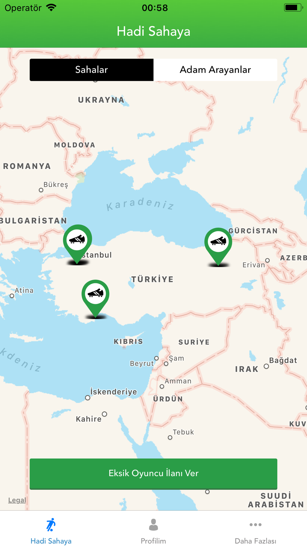 Harita üzerinde eksik oyuncu ilanı verilen maçları görüntüleme,