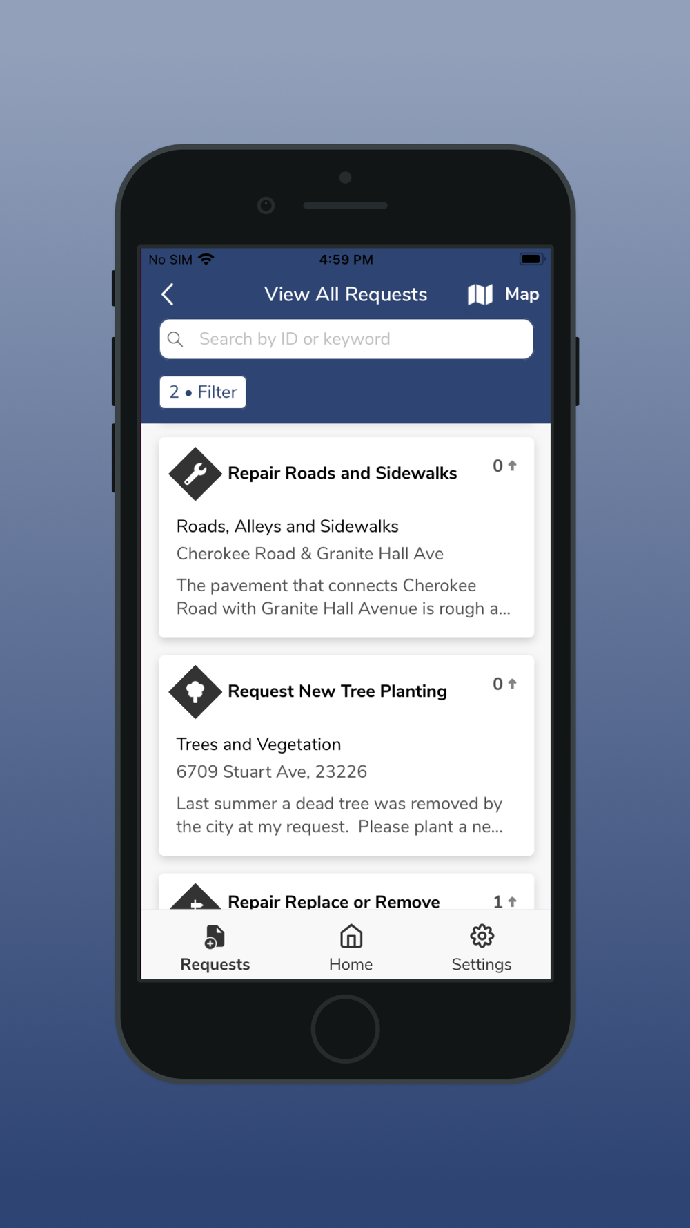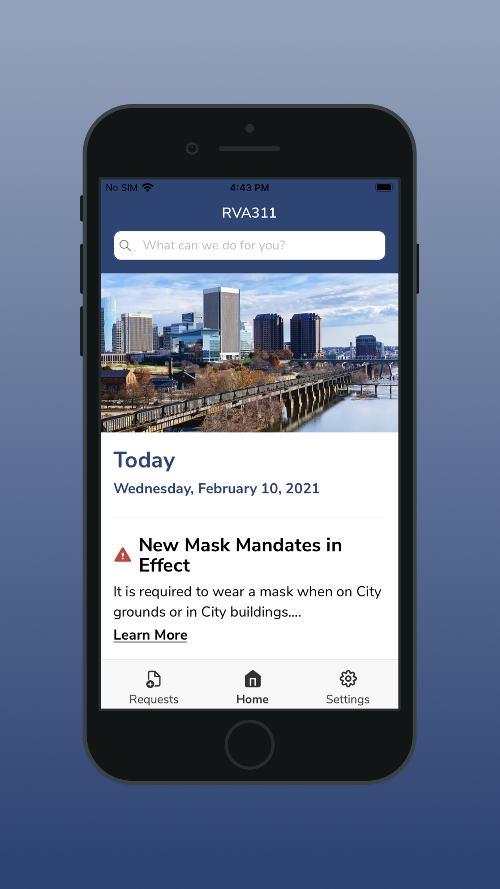 Welcome to the City of Richmond's RVA311 Citizen Services app! This app is designed to improve our service delivery efforts as well as our citizen engagement by providing citizens a way to report non-emergency incidents and submit service requests to agencies.