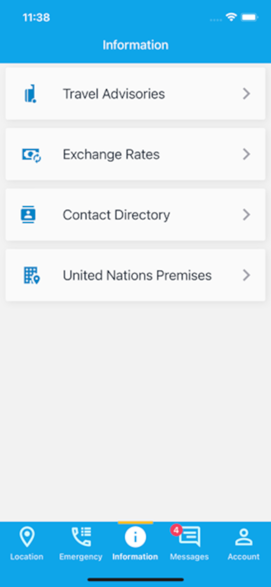 eTA provides travel advisories including security related information to anyone who may need to deal with the United Nations in their business while not necessarily being a staff member of the United Nations. The app offers the following features: