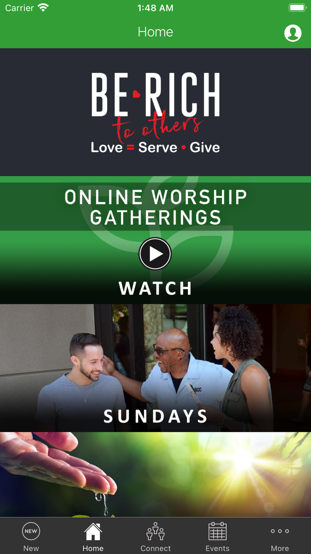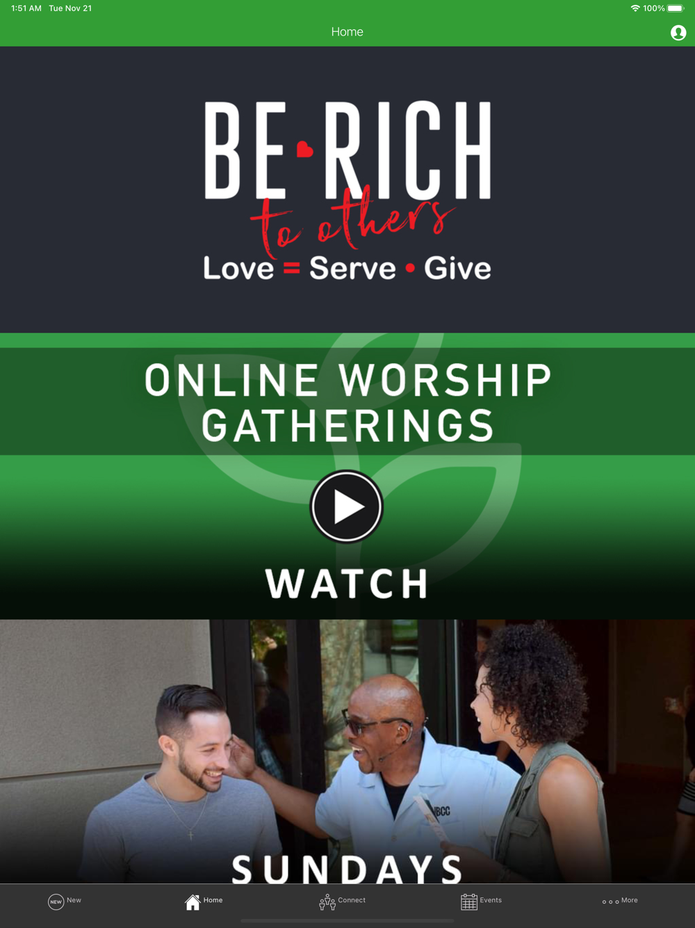 Sundays - Use the digital Connection Card, Events, Give, Bible and Notes (create and share)!