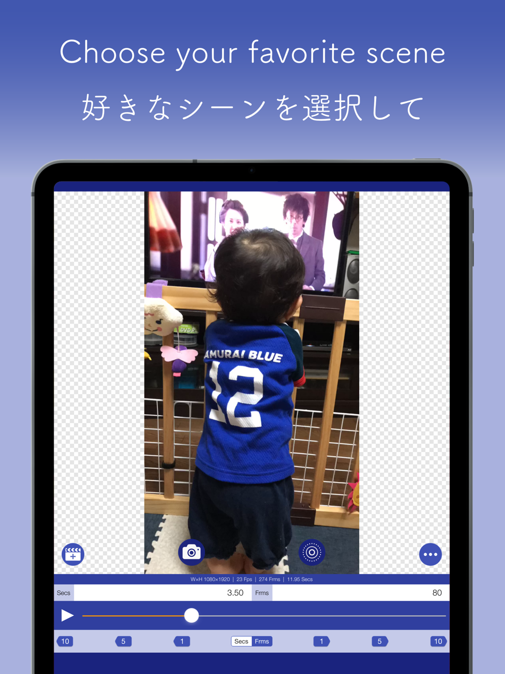 You can also select your favorite scene with the slider, you can also select your favorite scene in units of 1 second or 1 frame.
