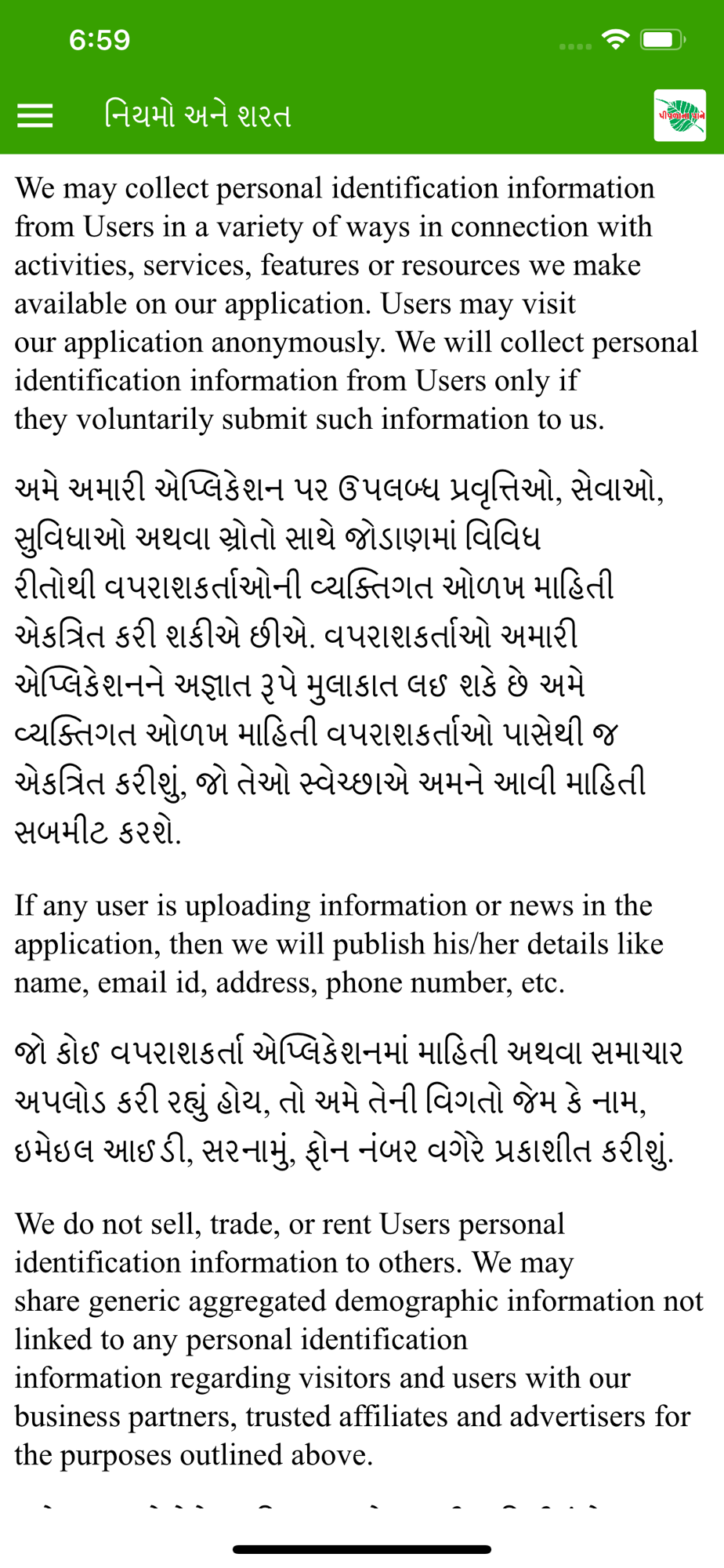 Aa application dwara koi pan khedut athva vepari kheti athva khetine lagti mahiti ane prashno puchi shake che. Kheduto ahi mafat ma potani le vech mate ni jaherat muki shake che. Aa application ma mukeli koi pan mahiti je te khedut athva to te vaprashkarta ni che, ena mate application teni choksai mate javabdar rehshe nai.