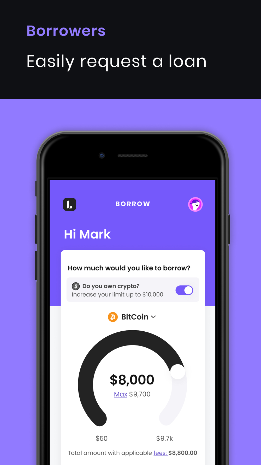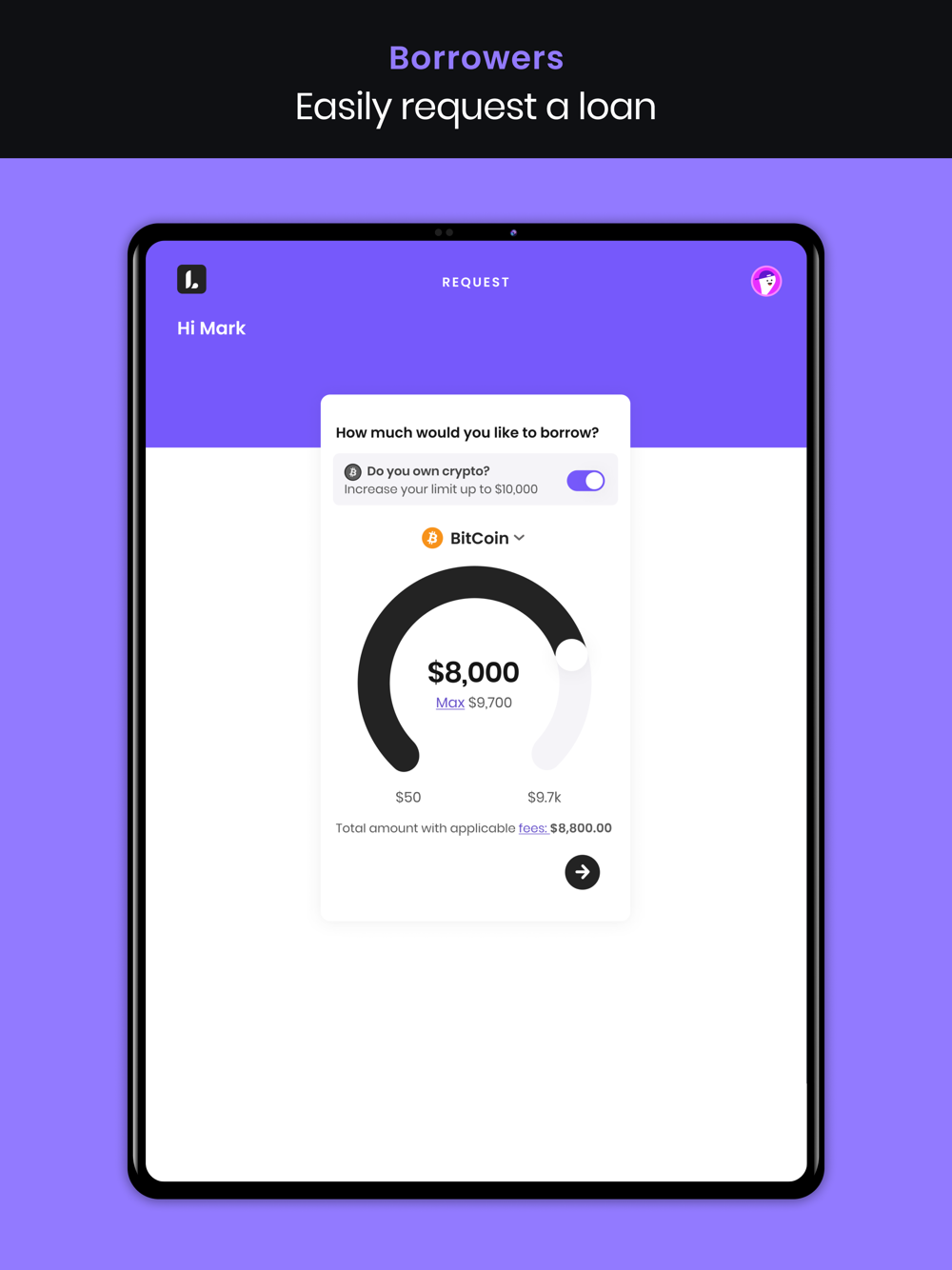 Crypto-backed loans, our new product allows investors to fund cash loans backed by cryptocurrency owned by the borrower. Cryptocurrencies are used as collateral and maybe liquidated in case of default or sudden price drop of the held currency.