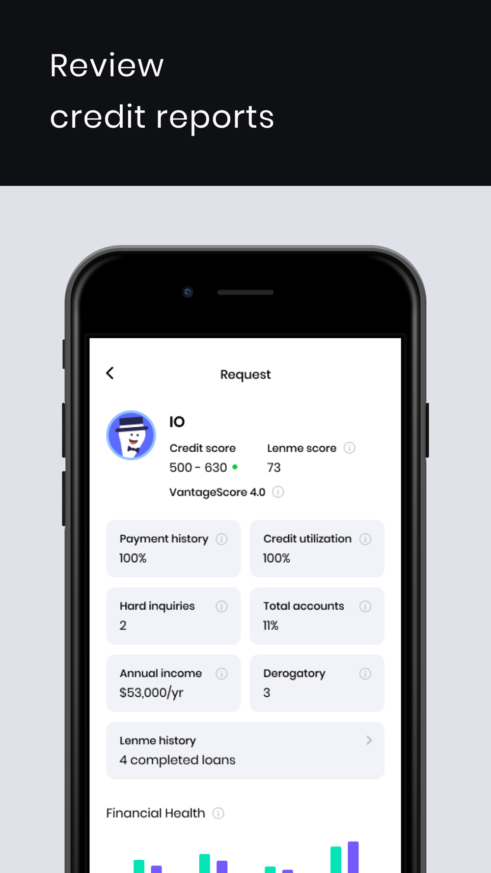 Want to be equipped with the same tools and data professional lenders have at their disposal? Lenme provides you with the credit score, borrower’s history, banking data and supports the process of lending all via the app.