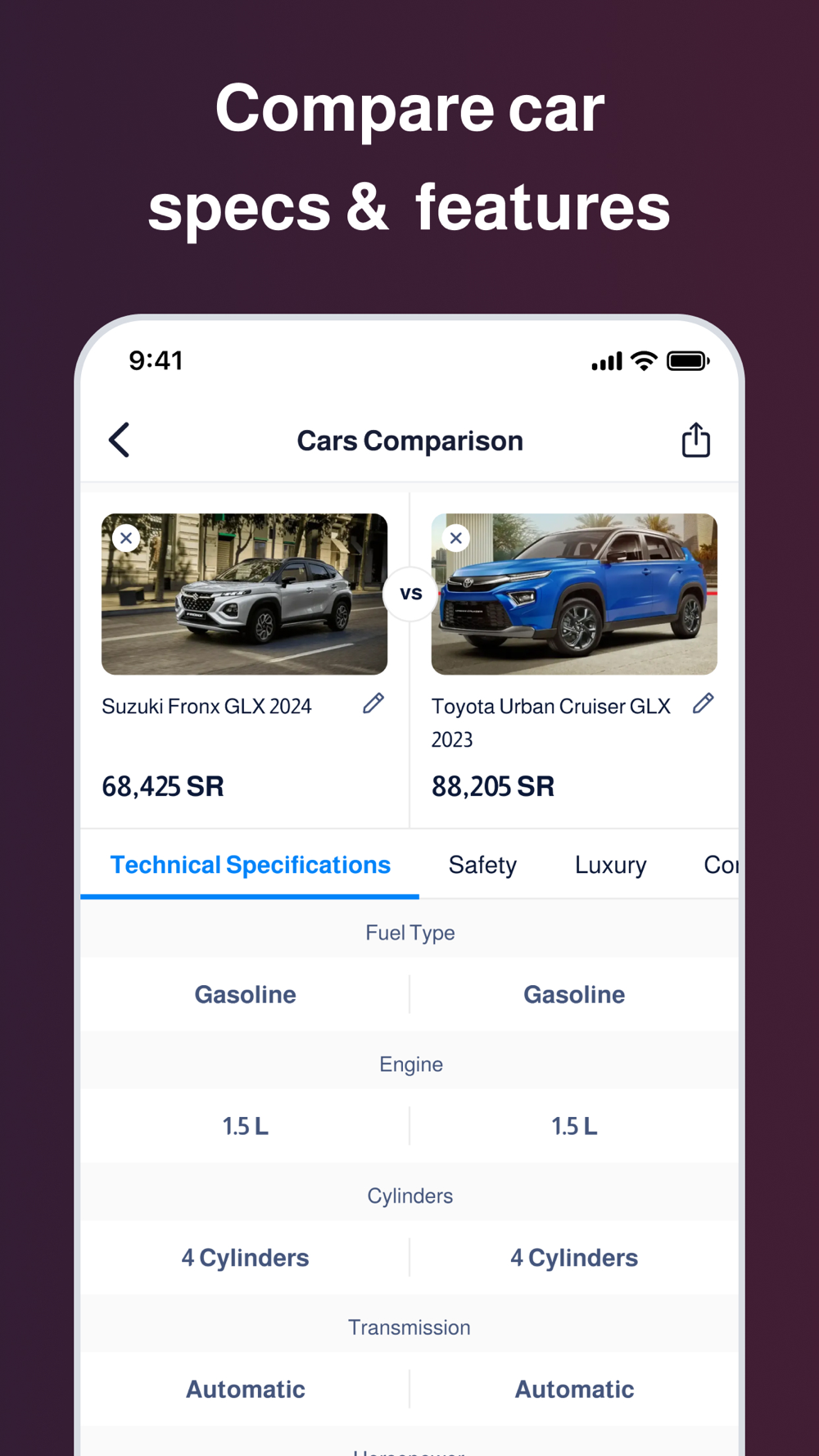 • Updates you with the latest offers from car dealerships and showrooms in the Kingdom