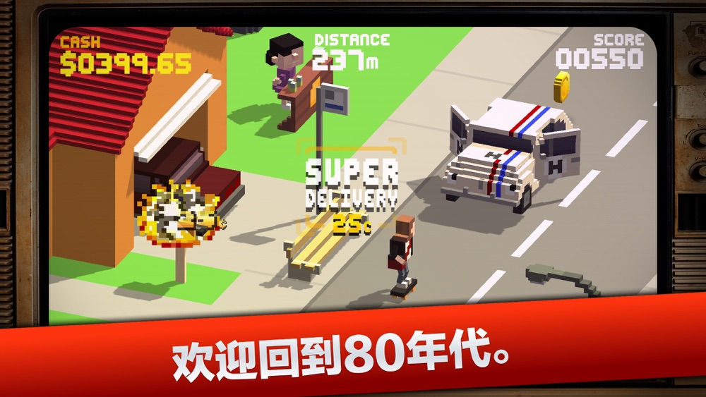 《The Videokid》视频小子是一款向80年代及该时代经典电子游戏致敬的作品。回到玩法单纯的时代,只要简单控制视频小子,让他把电影丢入客户的邮箱或窗口就能赚取现金。同时还要闪避路人、跳过疾驶而来的车子、躲避附近的警察……才能活命。而且这可不是一条平凡的街道,你可能会遇到非常熟悉的人物,你能认出几个呢?