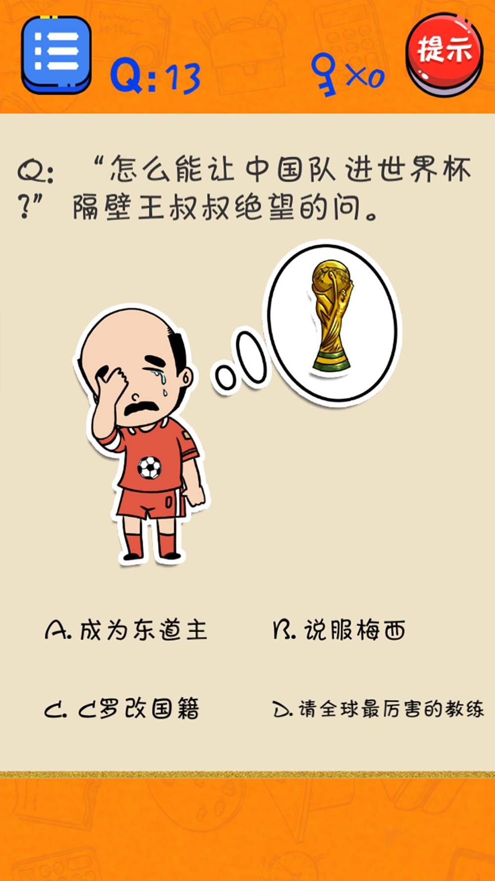 是一款趣味性十足的脑力游戏,游戏采用经典的问答游戏玩法,各种超皮的玩法让玩家的游戏体验变得更加的有趣哦。