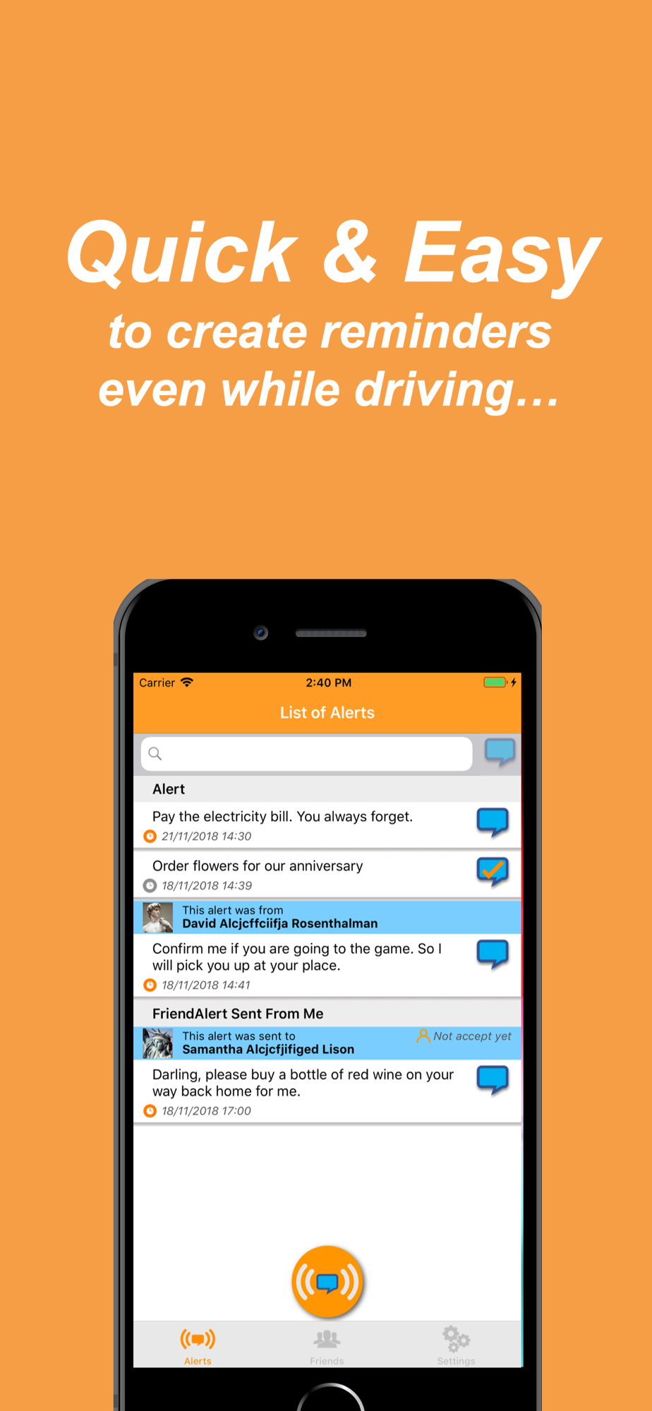 You can speak in your native language - so you can do it even while typing is difficult (e.g. driving), and AlertBuddy will transcribe into the reminder for yourself or your friends.