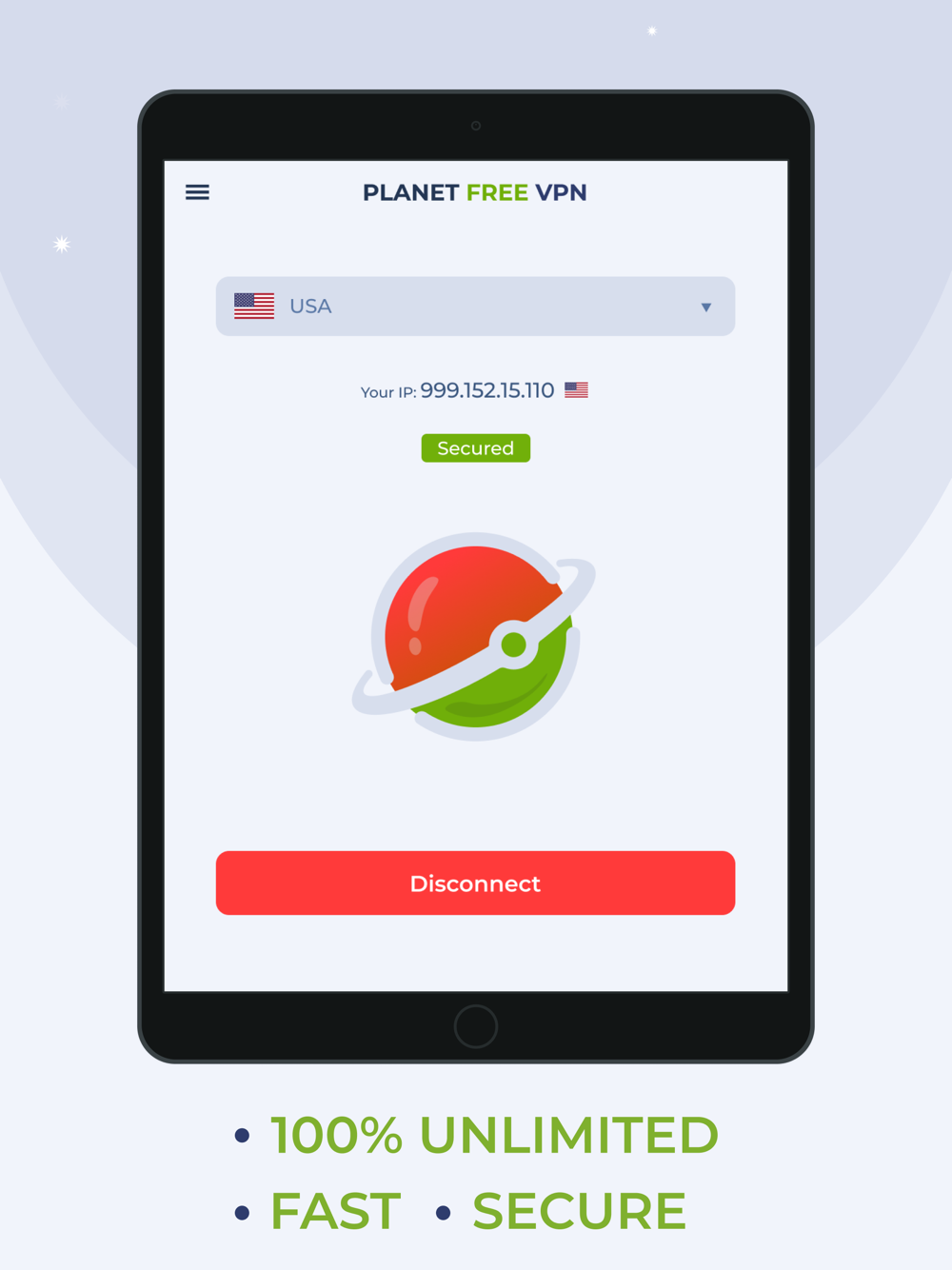 A free version of Planet VPN gives you basic features and performance of premium VPN services with no registration, no limitations on your connection and no annoying ads.