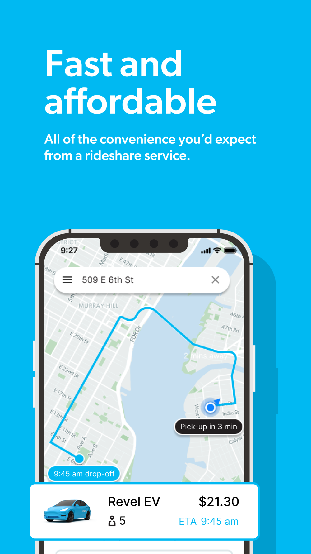 Revel's mission is to accelerate EV adoption by providing the infrastructure and services that make it easy to go electric. Through the Revel app, riders can request an electric car ride or find fast-charging stations compatible with any brand of EV. Founded in Brooklyn, NY in 2018, Revel currently operates in New York City.