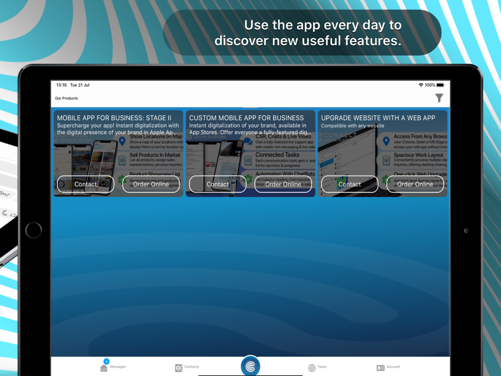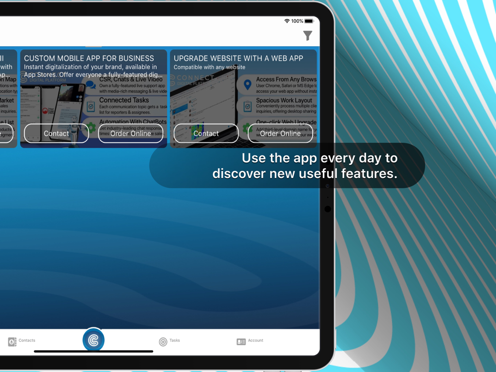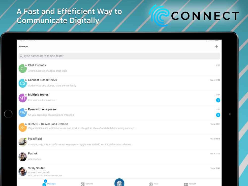 Connect Platform is a digital interactive environment with direct and group instant messaging features, calls, tasks, live notes, custom products, support operators, micro-services and much more!