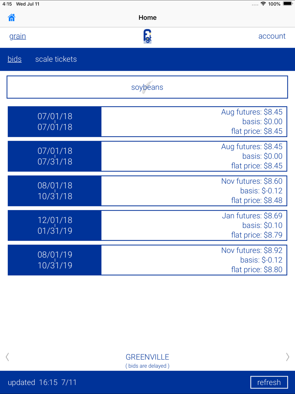 FGT Mobile is a mobile application designed to assist in pricing and tracking grain for Farmers Grain Terminal, Inc.°Øs customers. FGT Mobile will allow you to have access to all of your grain information delivered to any FGT location. Discuss with your local Farmers Grain Terminal contact.