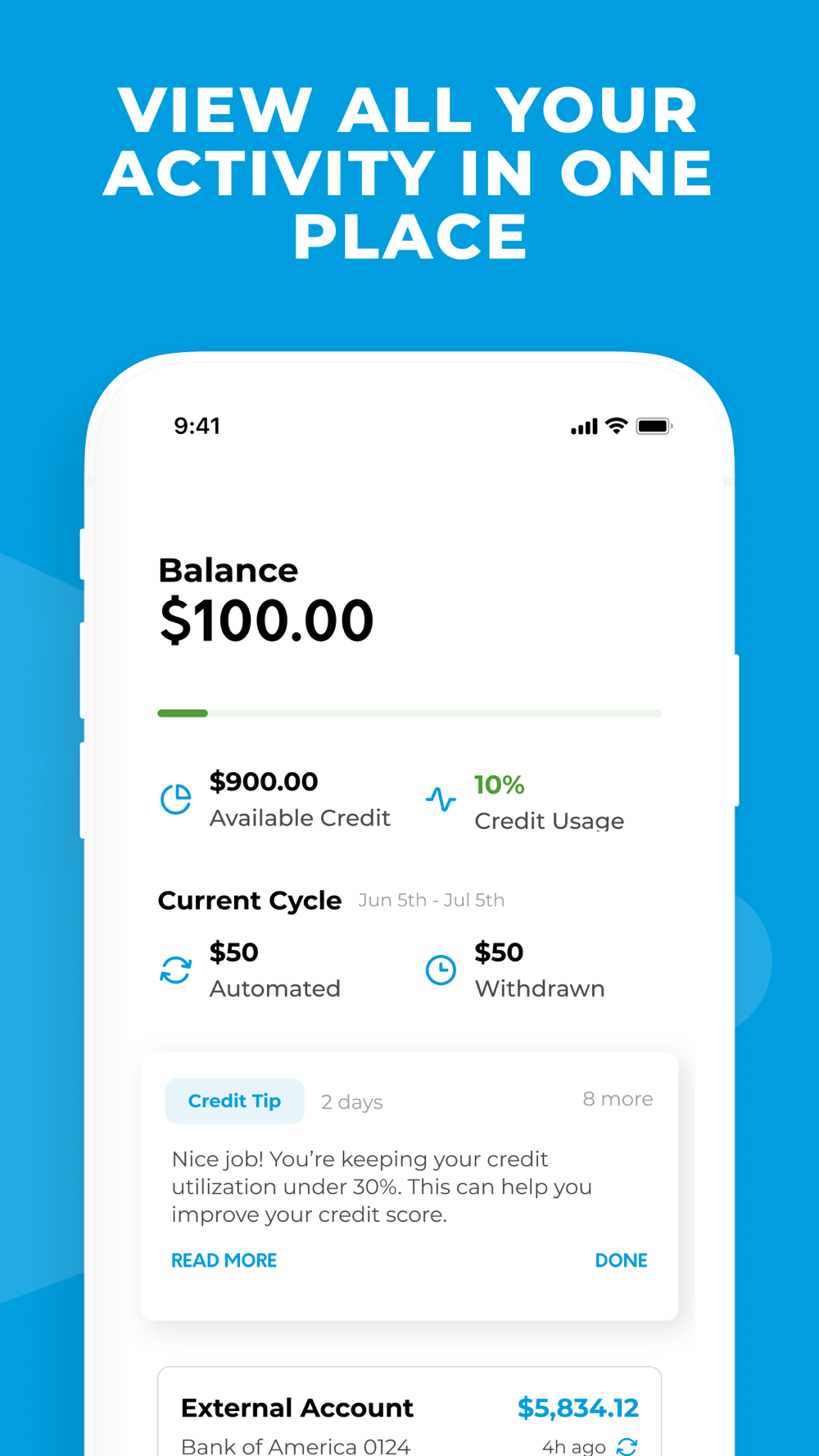 • Use credit in seconds - instantly transfer credit to your linked checking account and use it as cash, from your debit, or any way you’d like.