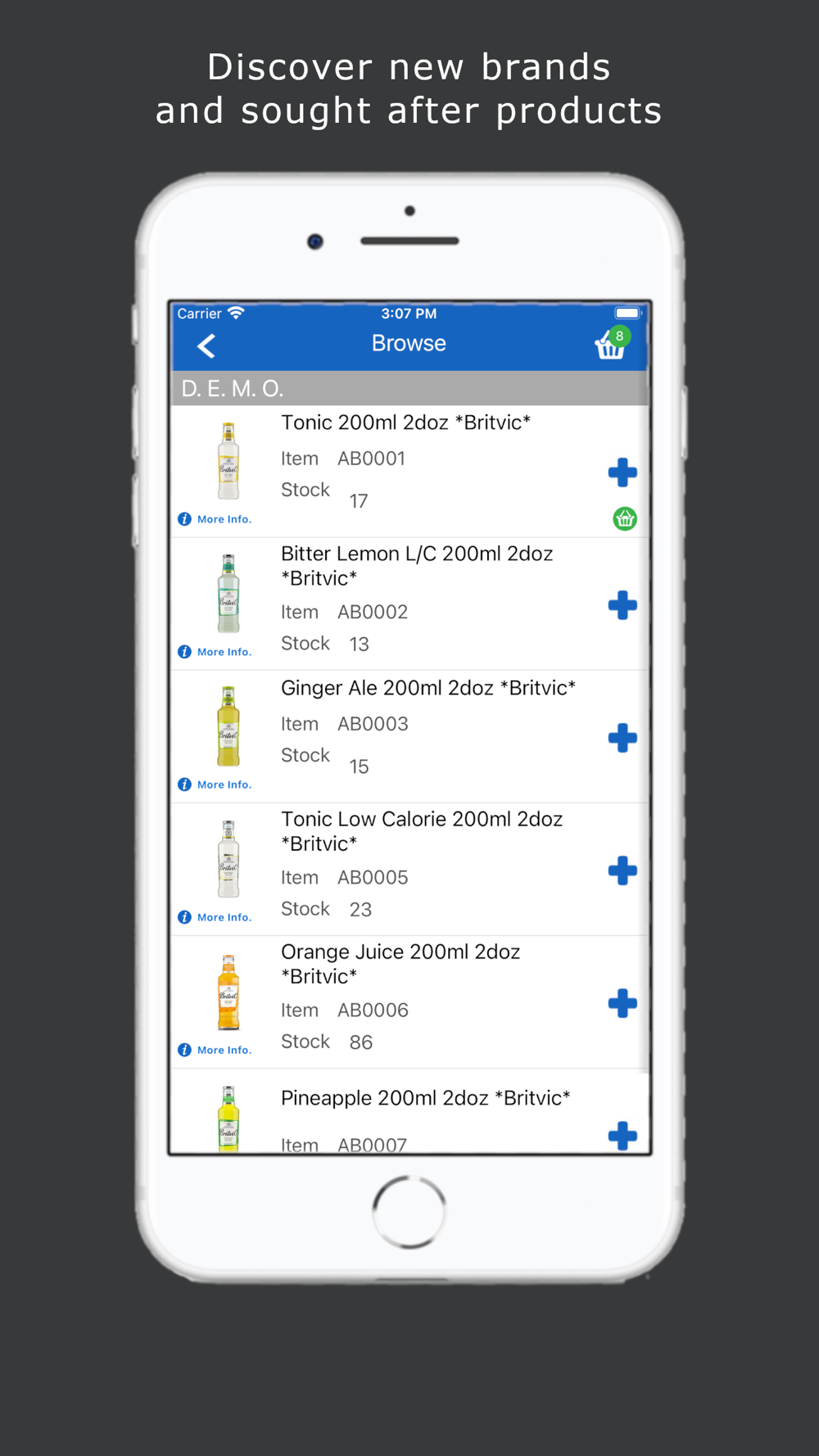 Once registered, you can browse our product listings or search for products by product code, by description or by scanning a barcode with your device’s camera. Quickly and easily browse our stocklist availability, place orders and receive special promotions and discounts, all from your smartphone or tablet.