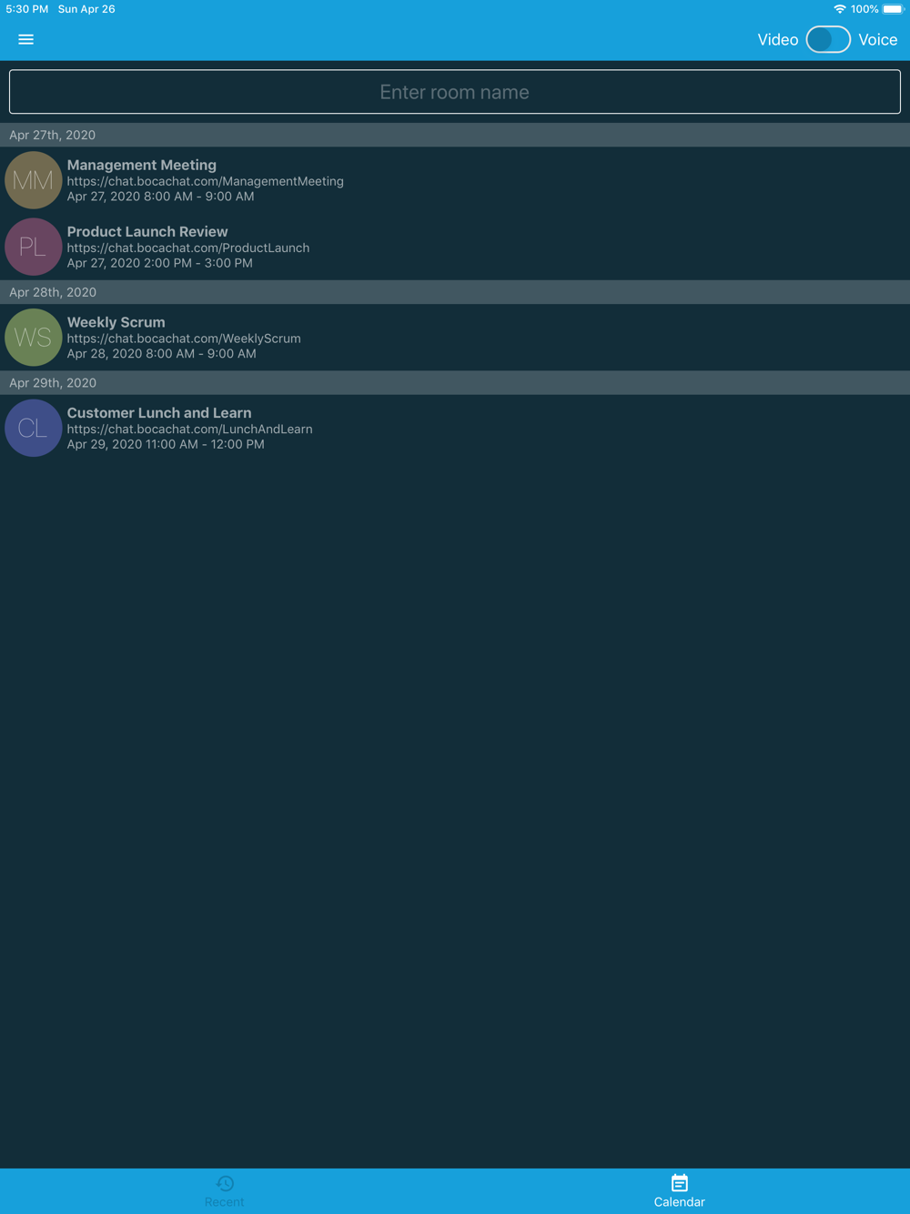BOCAChat is a communication app for voice and\or video conversations. BOCAChat is ideal for meetings or video conferencing with simple buttons to control video or sound. No subscription is required to join meetings as an attendee. Hosting a meeting requires a subscription.